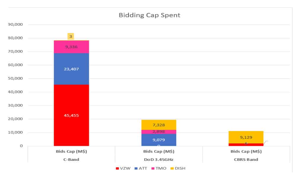 How much did Tier1 MNOs pay for the mid-band spectrum? Here is the chart showing how much each operator has paid to FCC to get the spectrum ownership for the certain time being.